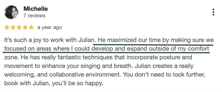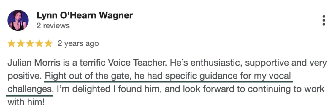 It's not a generic voice lesson. It's personalized vocal coaching based on YOUR specific problems.