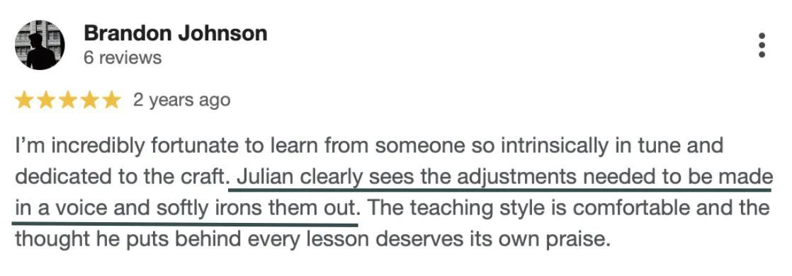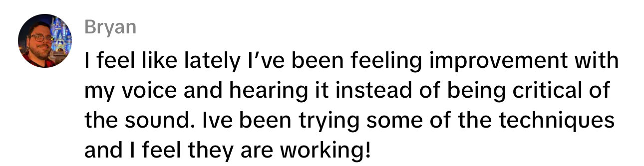 You record every session. You take what we work on and practice between sessions. Over time, you develop the ability to self-diagnose and troubleshoot your own voice.